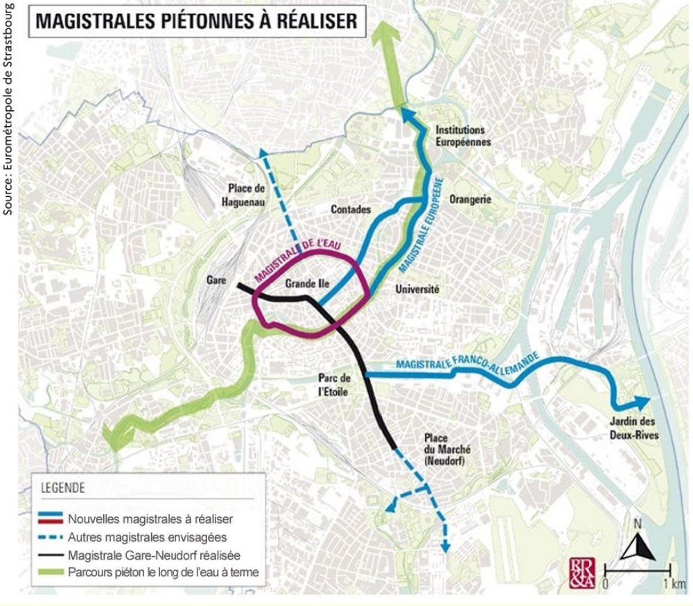Rappelons que sont en projet la magistrale de l’eau, autour de l’hypercentre, en liaison avec le ring cyclable, la magistrale européenne, vers les institutions éponymes, et la magistrale franco-allemande vers Kehl.